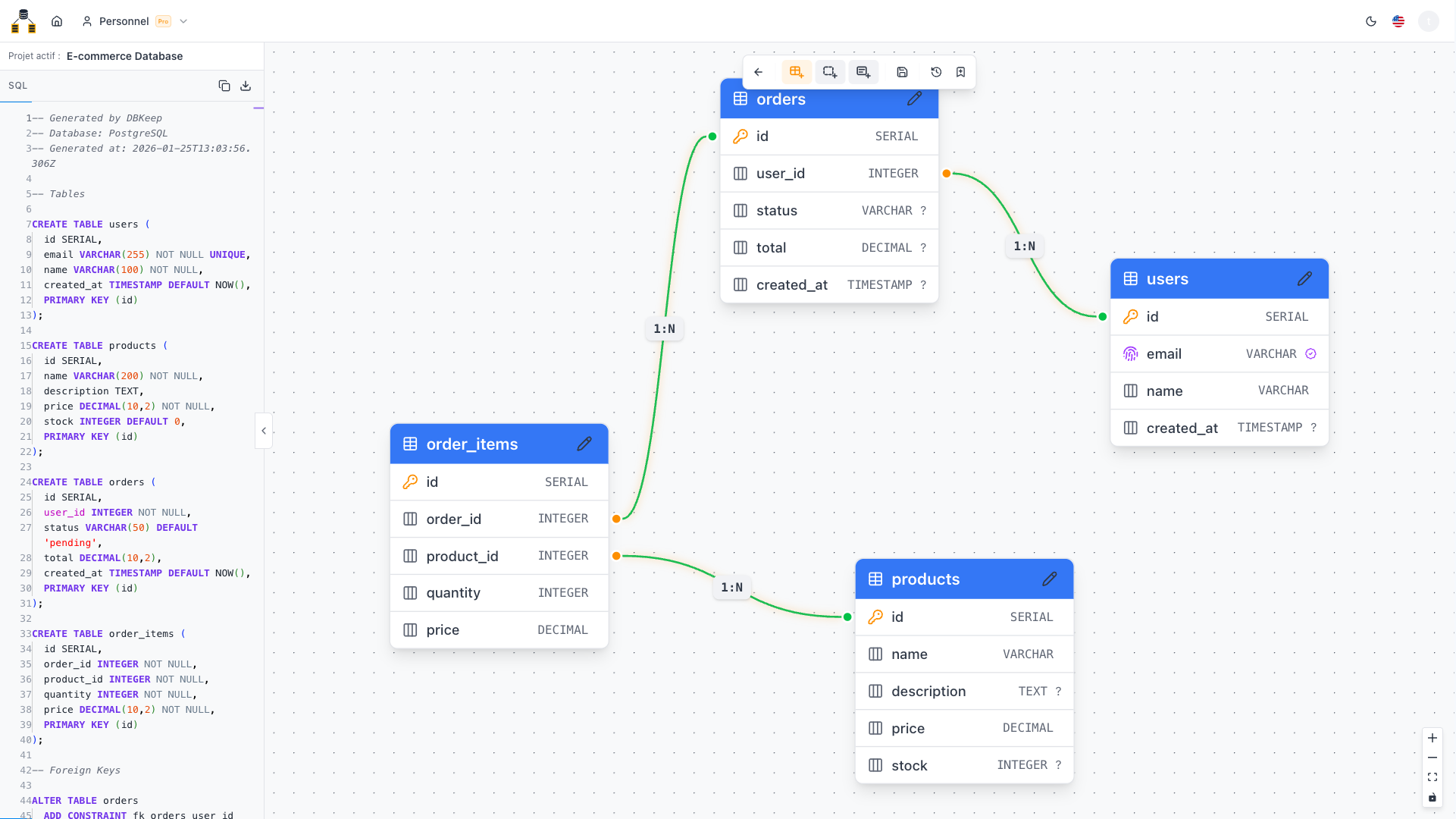 DBKeep Cloud est la plateforme collaborative pour modéliser, versionner et partager vos schémas de base de données avec votre équipe.